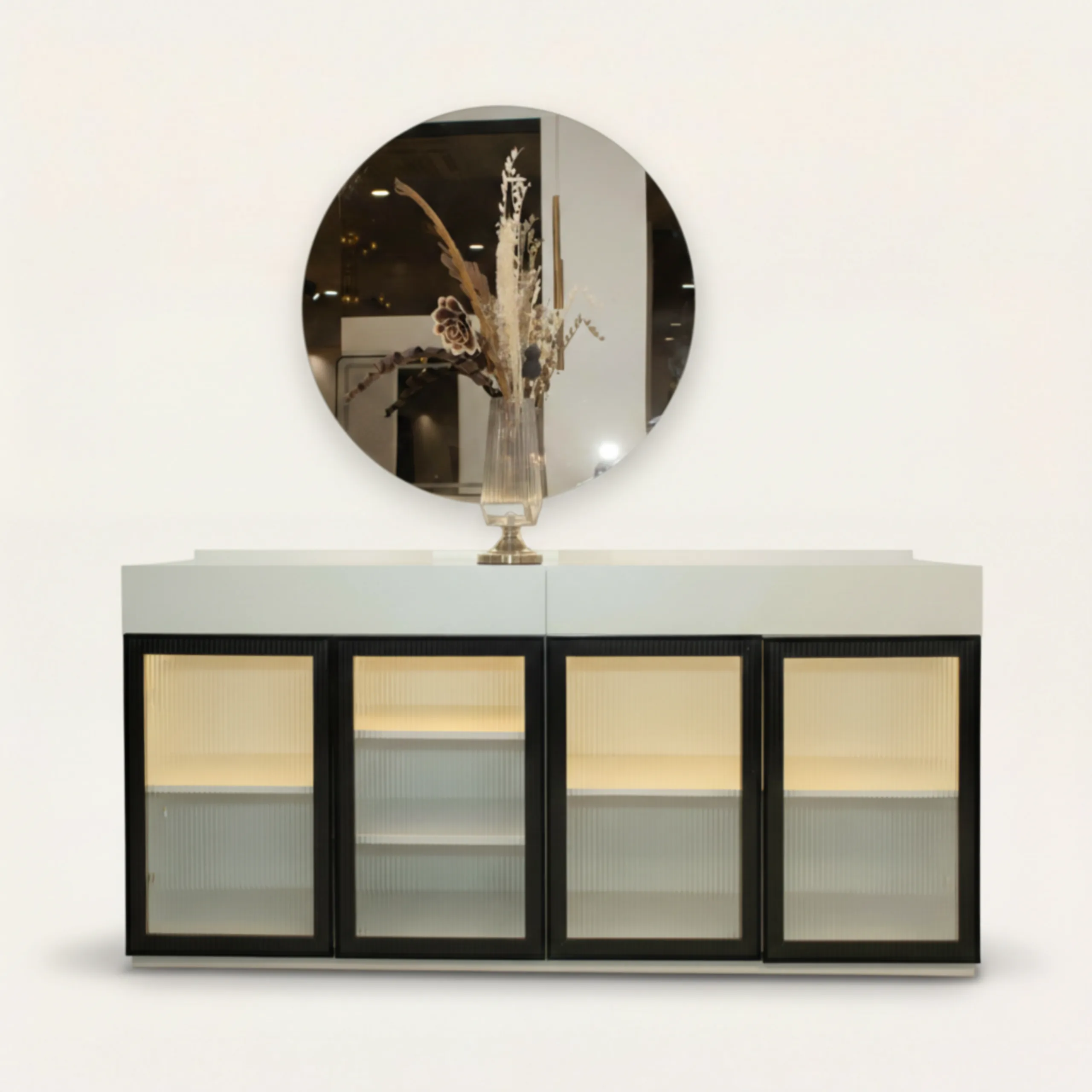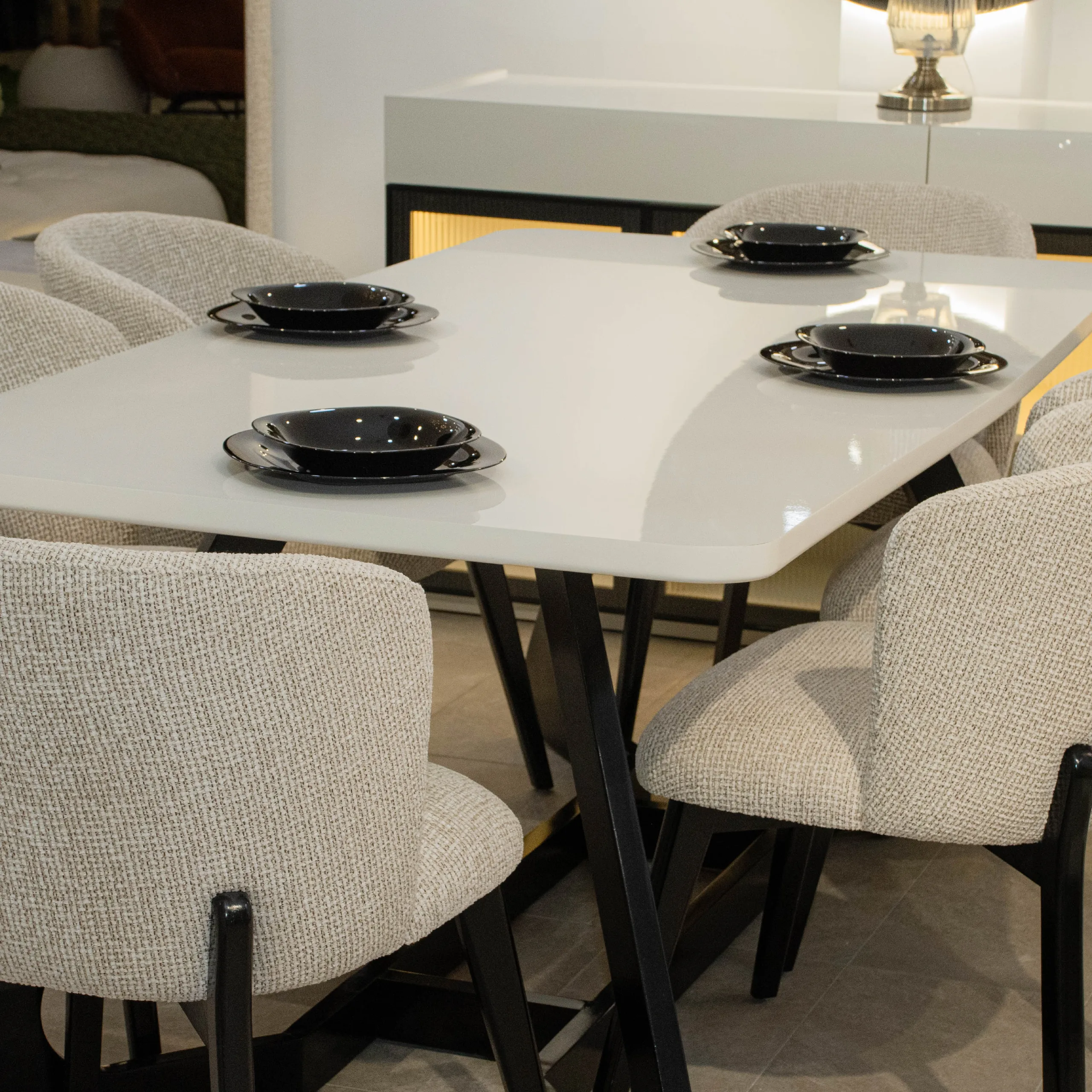 Buffet avec miroirs, Chaises, Salle à manger complète, Table et 6 chaises